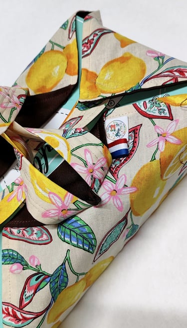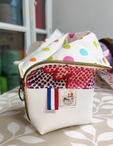 Accessoires textiles confectionnés à 90% à partir de tissus de seconde main, choisis pour leur charme et leur histoire, afin de proposer des pièces uniques et pratiques.